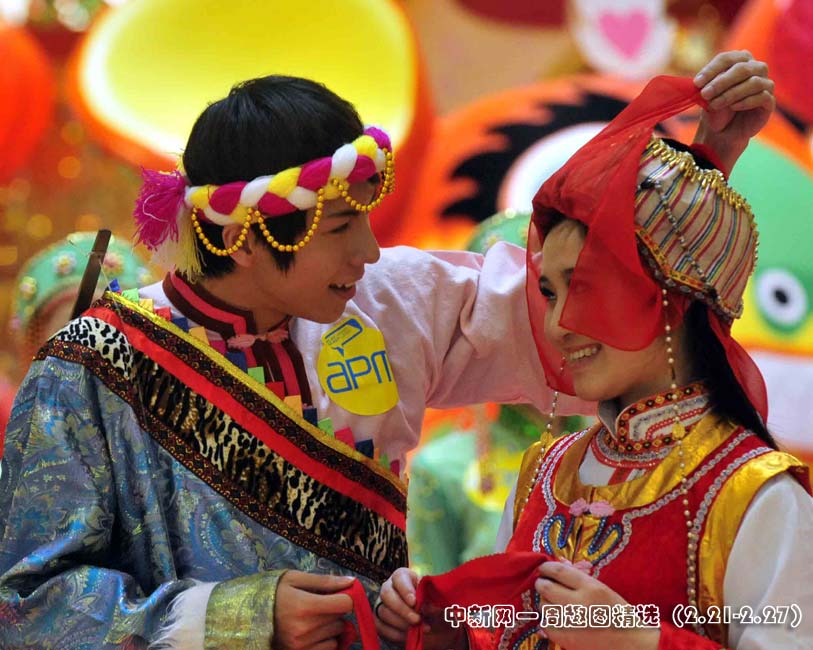 為迎接元宵節(jié),香港創(chuàng)紀(jì)之城將舉行三大特色少數(shù)民族婚禮,包括最多人口的壯族、好客的苗族和能歌善舞的蒙古族。25日,商場(chǎng)預(yù)演蒙古族新郎迎接新娘片段。圖片來(lái)源:中國(guó)新聞網(wǎng)>>點(diǎn)擊觀看詳細(xì)內(nèi)容
