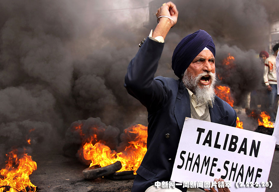 23日(周二),印度一些民眾抗議塔利班在巴基斯坦地區(qū)的暴行。