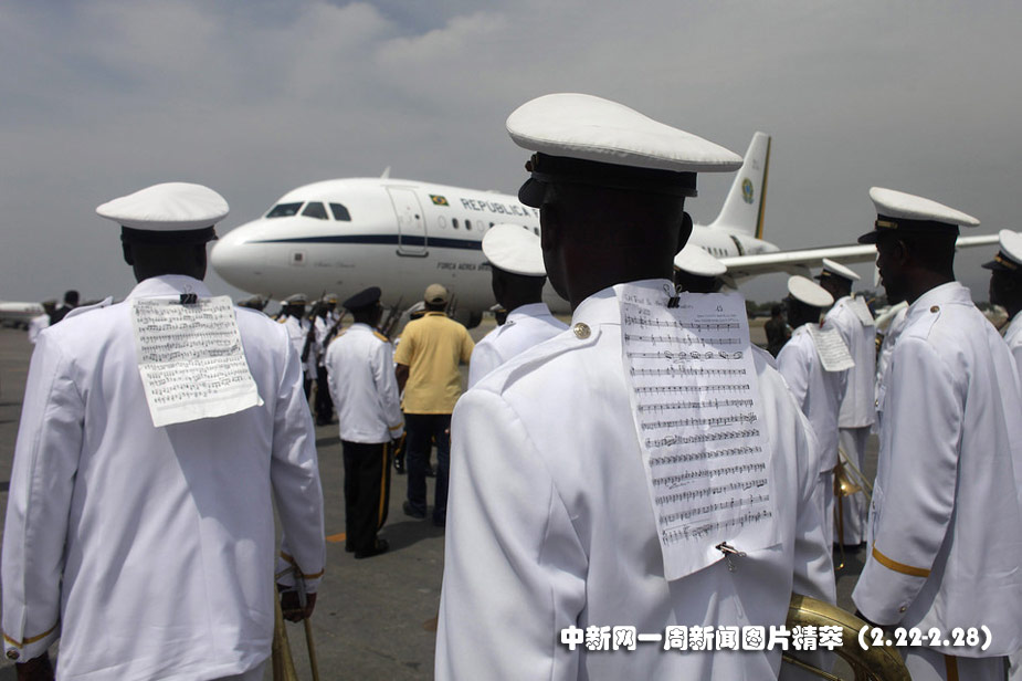 25日(周四),巴西總統(tǒng)盧拉抵達(dá)海地首府太子港,海地的榮譽(yù)樂隊(duì)在機(jī)場迎接。