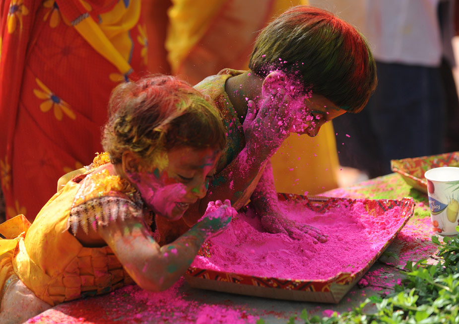 2月28日,印度舉行慶祝灑紅節(jié)活動,人們互撒顏料以示祝福。圖片來源:中國新聞網(wǎng)