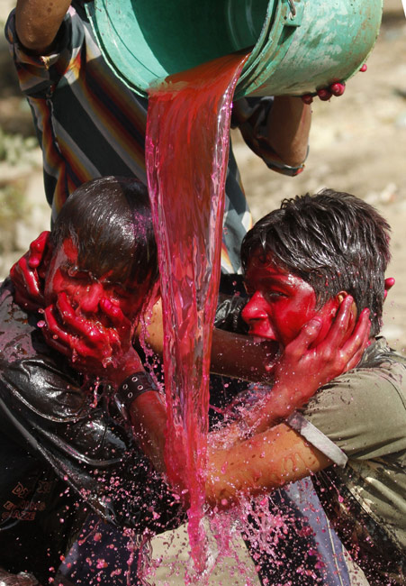 印度灑紅節(jié) 民眾互灑顏料送祝福