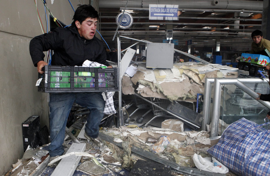 2月27日凌晨,智利發(fā)生了8.8級(jí)強(qiáng)烈地震。28日,智利康塞普西翁市,數(shù)百人對(duì)當(dāng)?shù)貎杉覀}庫進(jìn)行洗劫?等瘴魑淌惺虚L(zhǎng)表示,目前情況非常復(fù)雜,“開始失控”,災(zāi)民非常脆弱。