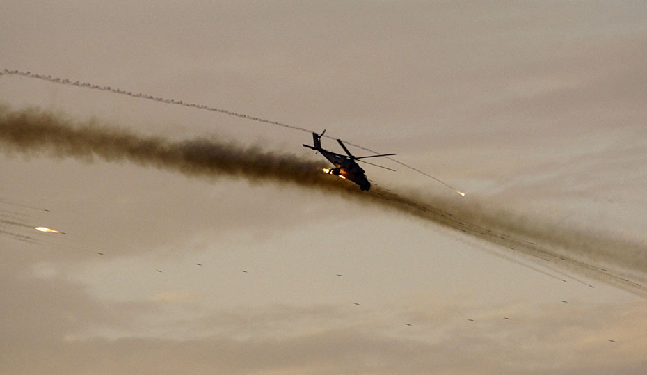 2月28日,印度空軍在該國西部地區(qū)舉行大規(guī)?罩谢鹆φ故狙萘(xí),出動(dòng)了包括“費(fèi)爾康”空中預(yù)警機(jī)、蘇-30戰(zhàn)斗機(jī)、米格-29戰(zhàn)斗機(jī)、幻影-2000戰(zhàn)斗機(jī)、伊爾-76運(yùn)輸機(jī)和米-35武裝直升機(jī)等約百架戰(zhàn)機(jī)。圖片來源:中國新聞網(wǎng)