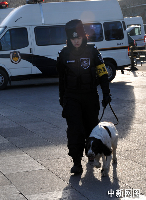 3月5日上午9時,十一屆全國人大三次會議在北京隆重開幕。國務(wù)院總理溫家寶作政府工作報告。圖為圖為人民大會堂外的安檢處。中新網(wǎng)記者 吳歆 攝