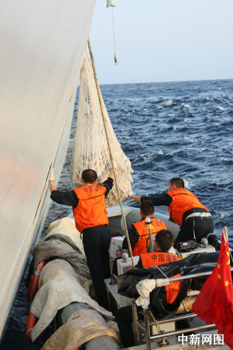 09年4月在西印度洋遭索馬里海盜挾持的臺(tái)灣遠(yuǎn)洋漁船“穩(wěn)發(fā)161號(hào)”,歷經(jīng)各方營(yíng)救,終于在遭挾持10個(gè)多月后,包括船長(zhǎng)顏勝男等共28人返回高雄港。圖片來(lái)源:中國(guó)新聞網(wǎng)