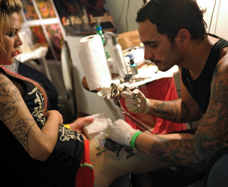 當(dāng)?shù)貢r間3月7日,第六屆國際紋身展在阿根廷首都布宜諾斯艾利斯舉行。來自美國、法國、西班牙、墨西哥、智利、巴西等國家的紋身高手前來獻(xiàn)藝。