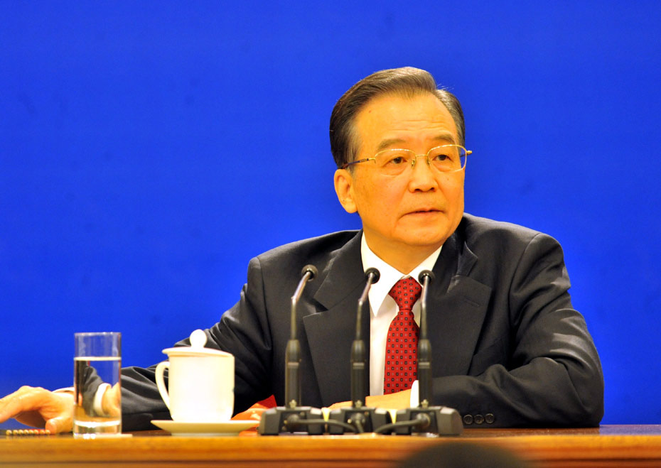3月14日上午,國務(wù)院總理溫家寶在人民大會堂三樓金色大廳與采訪十一屆全國人大三次會議的中外記者見面并回答記者提出的問題。中新社記者 賈國榮 攝 圖片來源:中國新聞網(wǎng)