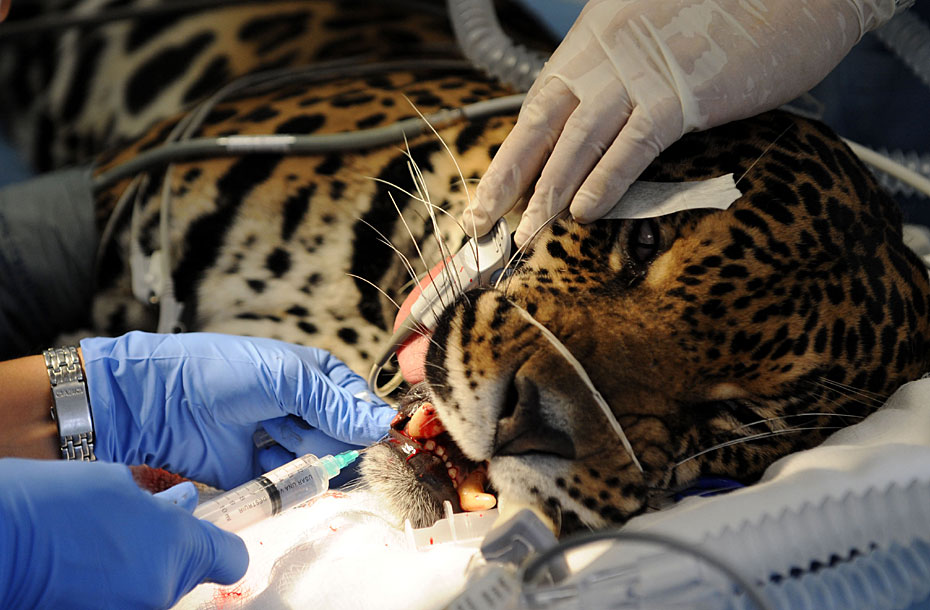 哥倫比亞獸醫(yī)為美洲虎實(shí)施牙齒手術(shù)