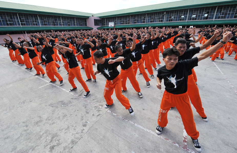 近日,在菲律賓超過(guò)1500名囚犯在監(jiān)獄中集體學(xué)習(xí)已故歌壇巨星杰克遜的舞蹈,以此來(lái)激起他們生活的斗志。圖片來(lái)源:中國(guó)新聞網(wǎng)