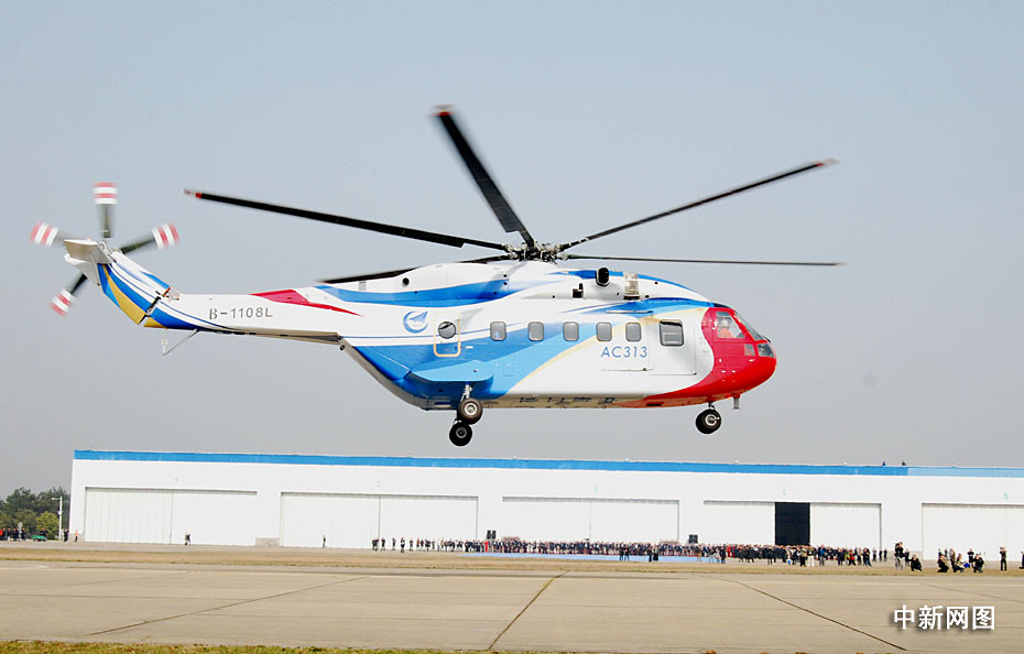 3月18日上午,中國首架大型民用直升機(jī)AC313在江西省景德鎮(zhèn)市成功首飛,標(biāo)志著中國和美、歐、俄一樣具備了自主研制大型直升機(jī)的能力。圖片來源:中國新聞網(wǎng)
