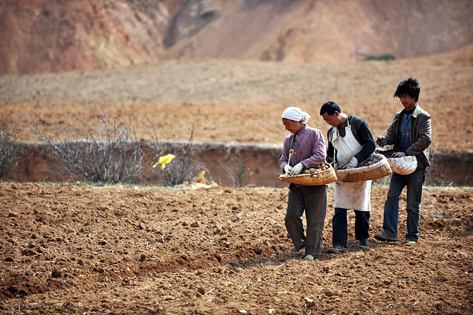 貴州威寧縣斗古鄉(xiāng)中關(guān)村村民在積極備耕,播種抗旱作物(3月13日攝)。圖片來源:新華網(wǎng) 歐東衢 攝