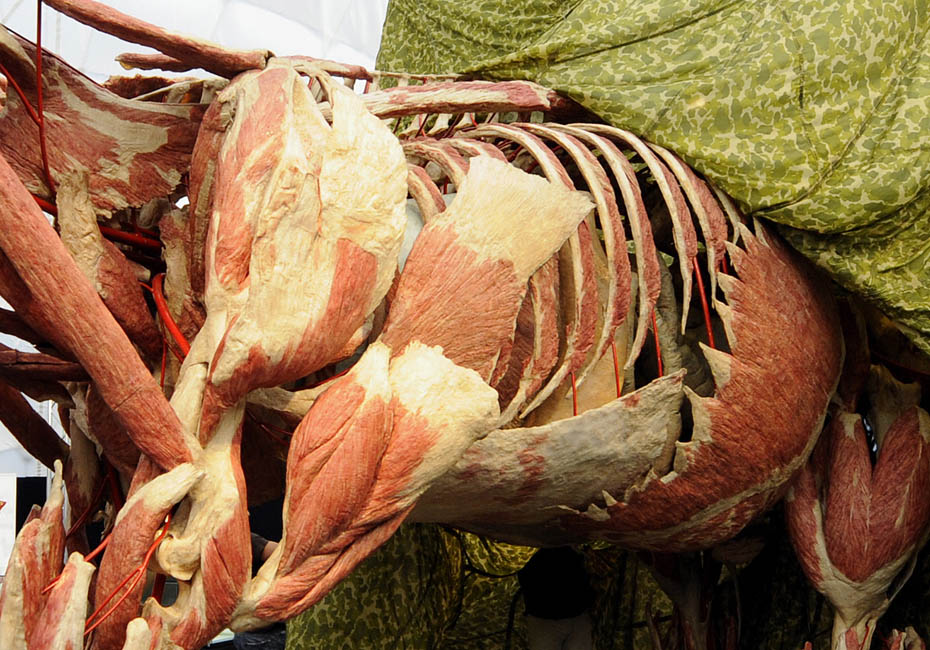 德國(guó)著名解剖學(xué)家鞏特爾·馮·哈根斯博士被稱為“死亡先生”,目前展出的是有史以來(lái)的最大的動(dòng)物尸體。體型巨大的“桑芭”尸體高3.5米,重3.2噸。據(jù)悉“桑芭”將于2010年4月歸還諾因基興動(dòng)物園。圖片來(lái)源:中國(guó)新聞網(wǎng)