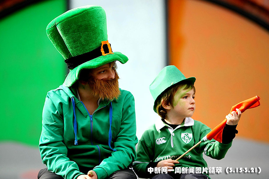 17日(周三),在都柏林,孩子們觀看圣帕特里克節(jié)大游行。愛(ài)爾蘭全國(guó)將有數(shù)十萬(wàn)人通過(guò)180多個(gè)活動(dòng)來(lái)慶祝這一節(jié)日。