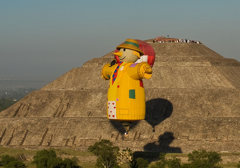 當?shù)貢r間3月21日,熱氣球從墨西哥特奧蒂瓦坎上空飛過。墨西哥近日在特奧蒂瓦坎附近舉行熱氣球節(jié)迎接春分的到來。圖片來源:中國新聞網(wǎng)