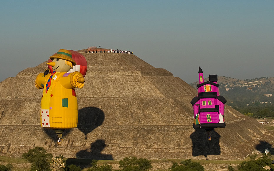 當(dāng)?shù)貢r(shí)間3月21日,熱氣球從墨西哥特奧蒂瓦坎上空飛過。墨西哥近日在特奧蒂瓦坎附近舉行熱氣球節(jié)迎接春分的到來。圖片來源:中國(guó)新聞網(wǎng)