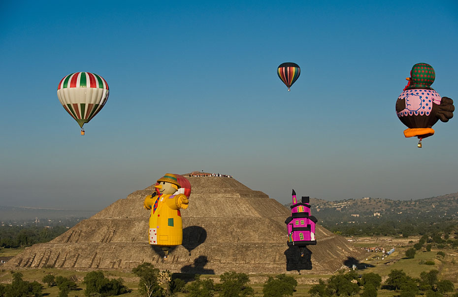 當(dāng)?shù)貢r間3月21日,熱氣球從墨西哥特奧蒂瓦坎上空飛過。墨西哥近日在特奧蒂瓦坎附近舉行熱氣球節(jié)迎接春分的到來。圖片來源:中國新聞網(wǎng)
