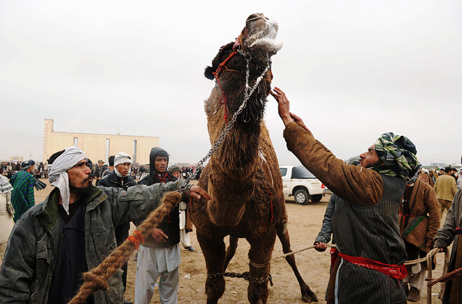 3月22日,阿富汗舉行傳統(tǒng)的都駱駝大賽慶祝阿富汗新年。斗駱駝在阿富汗是一項(xiàng)頗受民眾喜歡的運(yùn)動(dòng)。