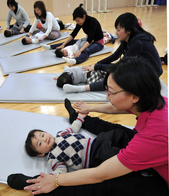 3月24日,在日本橫濱市的一堂母嬰桑巴課上,媽媽們帶著自己的寶寶一起參加舞蹈訓(xùn)練。 圖片來源:中國(guó)新聞網(wǎng)