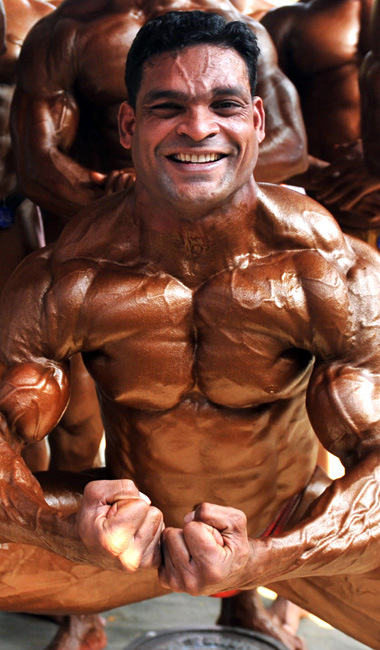 3月24日,印度舉辦第37屆健美錦標賽,來自陸軍、空軍和海軍的防務人員在健美比賽上大秀肌肉展現(xiàn)男性魅力。圖片來源:中國新聞網(wǎng)