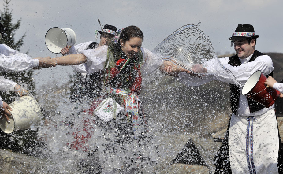 3月26日,在匈牙利首都布達(dá)佩斯以東被譽(yù)為世界文化遺產(chǎn)的霍洛克村,當(dāng)?shù)鼐用褚韵蚬媚锷砩蠞娝膫鹘y(tǒng)儀式慶祝復(fù)活節(jié)。此項(xiàng)古老習(xí)俗起源于公元2世紀(jì)。