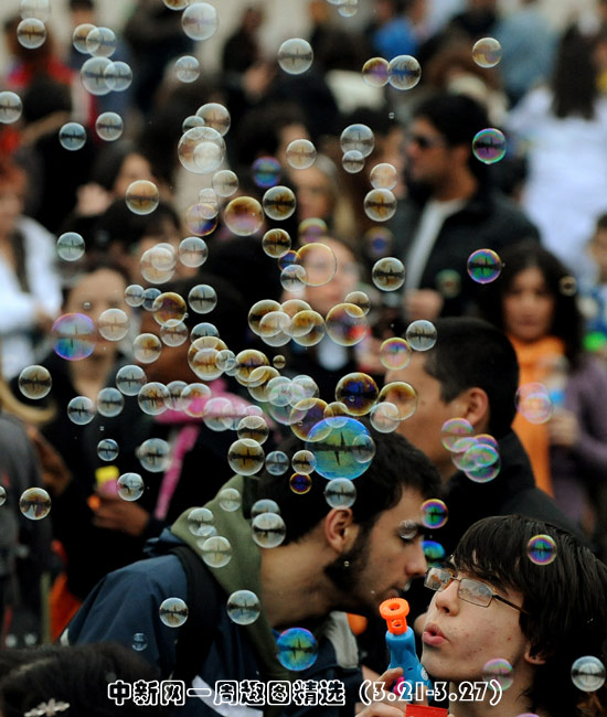 3月21日,在意大利羅馬城中的波波洛廣場(chǎng),參加“快閃”族聚會(huì)的人們吹泡泡迎接春天的到來。圖片來源:中國(guó)新聞網(wǎng)>>點(diǎn)擊觀看詳細(xì)內(nèi)容