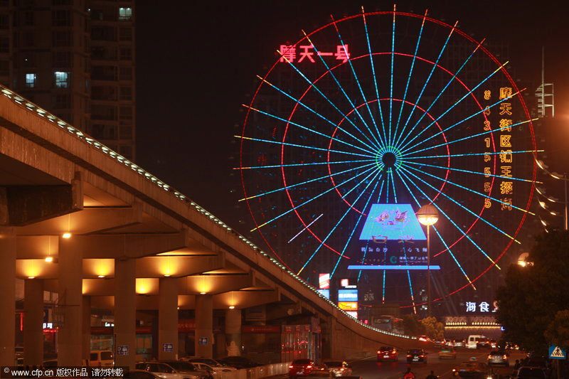03月27日, 長沙,芙蓉中路的標(biāo)志性建筑亞洲第一高摩天輪(熄燈前)。赤兔/CFP
