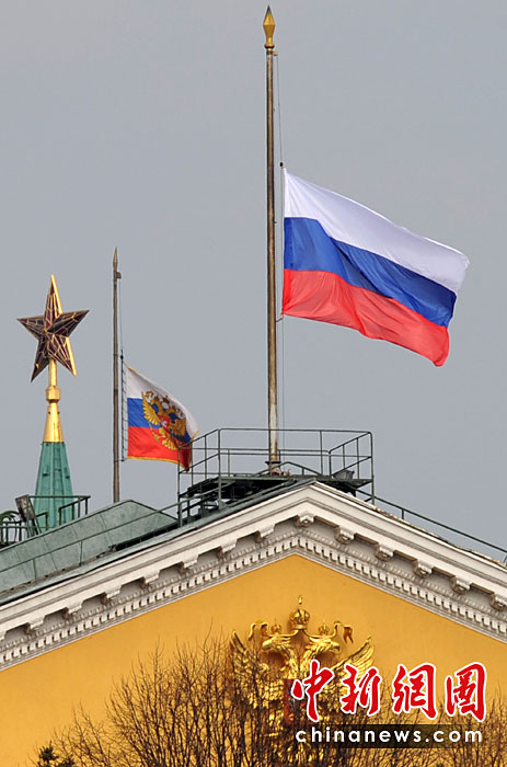 圖為俄羅斯政府機構(gòu)降半旗致哀。