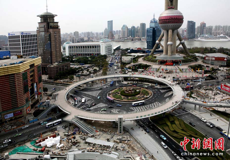 位于上海浦東陸家嘴中心地區(qū)的環(huán)形天橋——“明珠環(huán)”人行天橋基本建成,預計在世博會前正式投入啟用!懊髦榄h(huán)”毗鄰東方明珠廣播電視塔,圓周長370米,設4個出口,并配有步行樓梯、自動扶梯和殘疾人無障礙垂直電梯。它的建成已成為陸家嘴金融中心地區(qū)一大景觀。徐網(wǎng)林CFP