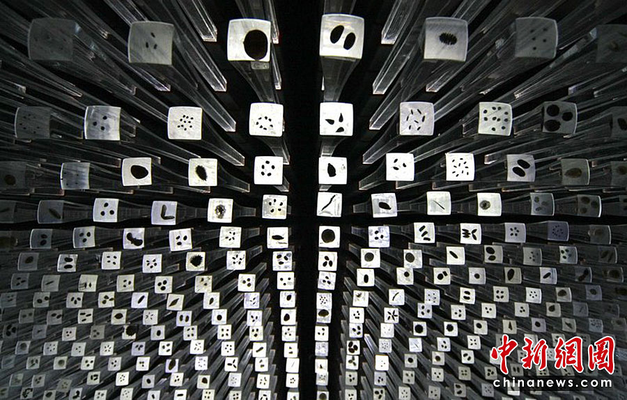 上海世博會(huì)籌辦工作已進(jìn)入最后沖刺階段,在世博建設(shè)者的努力下,放眼浦江兩岸的世博園區(qū),星羅棋布的外國(guó)國(guó)家館、企業(yè)館和城市最佳實(shí)踐區(qū)案例館各具特色,爭(zhēng)奇斗艷。圖為由60686根蘊(yùn)含植物種子的透明亞克力桿組成的世博會(huì)英國(guó)館內(nèi)景。丁曉春/CFP