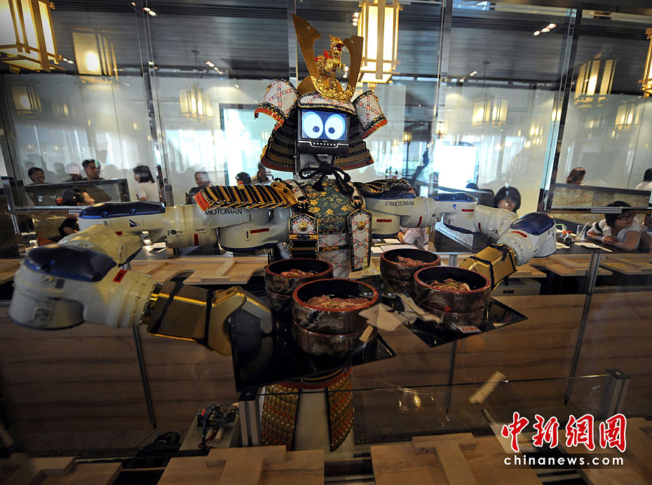 這家日本餐館是泰國(guó)首家擁有機(jī)器人服務(wù)員的餐館,顧客可以通過(guò)電子觸摸屏進(jìn)行點(diǎn)菜,機(jī)器人則會(huì)帶來(lái)相應(yīng)的服務(wù)。機(jī)器人服務(wù)員能有節(jié)奏地跳舞,還可以自動(dòng)到餐桌為客人收走空盤子。