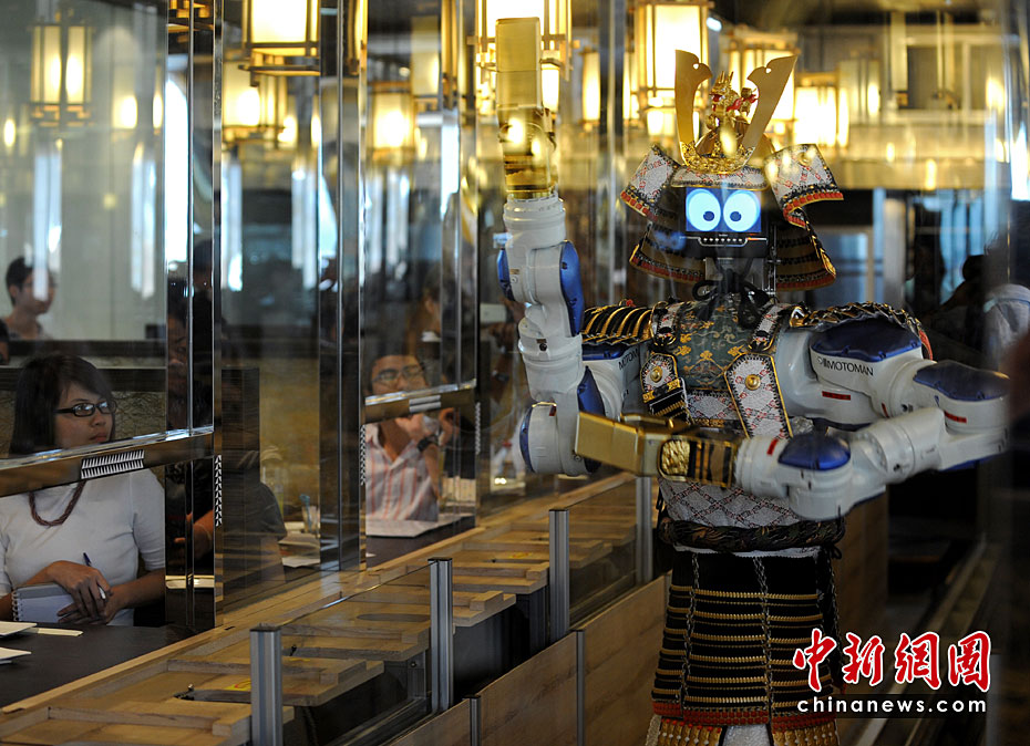 這家日本餐館是泰國首家擁有機器人服務員的餐館,顧客可以通過電子觸摸屏進行點菜,機器人則會帶來相應的服務。機器人服務員能有節(jié)奏地跳舞,還可以自動到餐桌為客人收走空盤子。