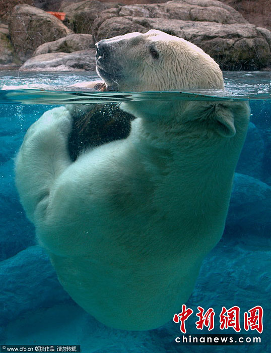 美國Asheboro北卡羅來納動物園一頭名叫威利的北極熊可是個“活寶”。任何一個可用的東西都能成為它在鏡頭前“耍寶”的玩具。圖片來源:CFP