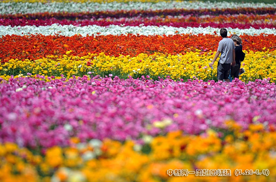 美國加利福尼亞州圣迭戈的卡爾斯巴德花田近日繁花盛開,姹紫嫣紅的花朵整齊地鋪滿在五十英畝的土地上,一望無垠的花海,美不勝收。圖片來源:中國新聞網(wǎng)>>點擊觀看詳細(xì)內(nèi)容