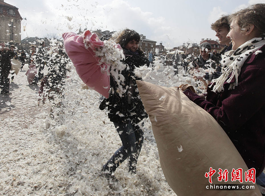 4月3日是國(guó)際“枕頭大戰(zhàn)”日。在這一天,多個(gè)國(guó)家的“枕頭大戰(zhàn)”愛好者相約走上街頭,用獨(dú)特的方式來(lái)慶祝他們的節(jié)日。圖片來(lái)源:中國(guó)新聞網(wǎng)