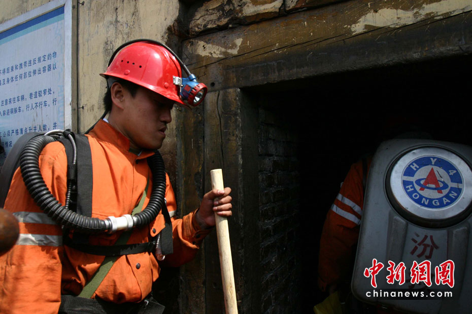 4月3日,華晉焦煤公司王家?guī)X礦透水事故第七天。下午1時許,汾西礦山大隊7名隊員與鄉(xiāng)寧救護(hù)隊6名隊員一共13名搜救隊員攜帶各種急救設(shè)備配合潛水員下井進(jìn)行搜救。搜救隊員在接受記者采訪時,介紹他們主要工作是配合潛水員搜救,并保護(hù)潛水員,發(fā)現(xiàn)被困人員時,緊急救援并通知井上人員進(jìn)行救治,急救車已在離井口30米處待命。中新社發(fā) 張云 攝