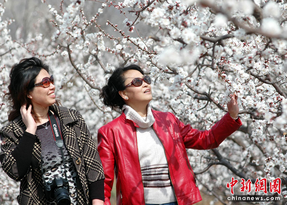 4月3日,山東鄒平縣萬畝杏園內(nèi)鮮花怒放,爭奇斗艷,正在進(jìn)行的杏花節(jié)觀花活動吸引了當(dāng)?shù)丶爸苓叧汕先f的攝影愛好者和游客紛紛前來拍照游玩,賞花踏青。中新社發(fā) 董乃德 攝