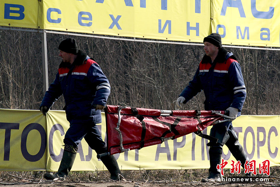 4月11日,波蘭總統(tǒng)卡欽斯基專機在俄羅斯斯摩棱斯克軍用機場墜毀地點附近的道路開通,但是警戒線核心區(qū)仍然關(guān)閉。俄波調(diào)查人員正在現(xiàn)場工作。圖片來源:中國新聞網(wǎng)