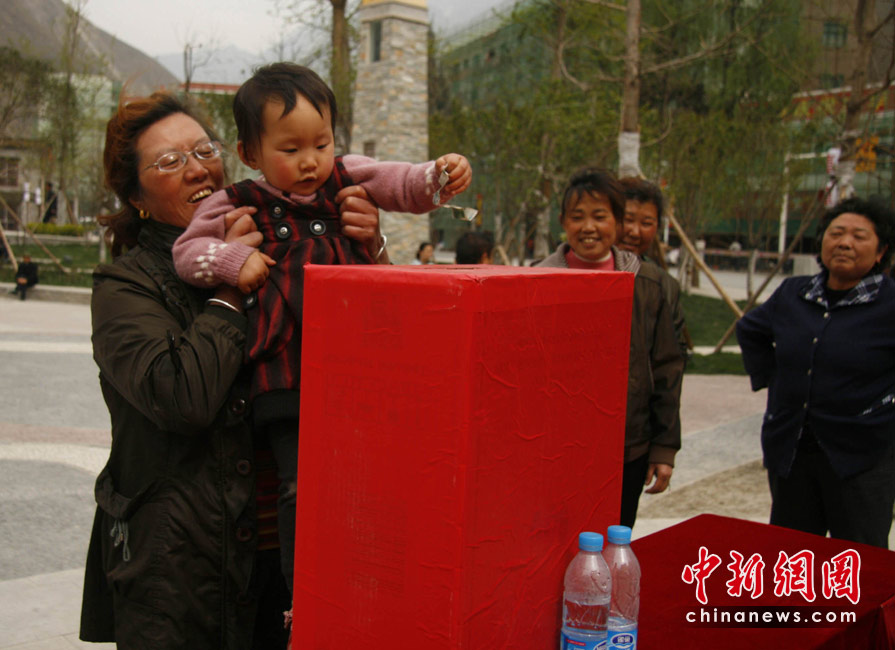 4月15日,汶川發(fā)動各方力量向青海玉樹災區(qū)籌集善款,汶川縣政府向村級以上單位發(fā)出捐款通知,在汶川縣鍋莊廣場啟動,汶川紅十字會在當天就籌得善款5萬余元。中新社發(fā) 汶川宣傳部 供