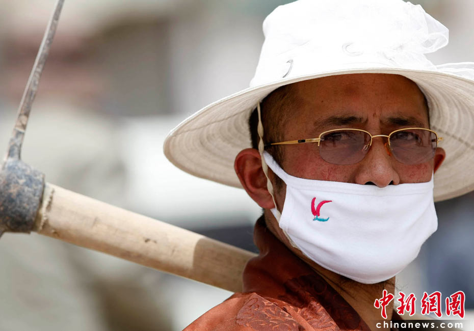 2010年4月16日,青海玉樹(shù)藏族自治州玉樹(shù)縣結(jié)古鎮(zhèn)震災(zāi)現(xiàn)場(chǎng),一名志愿者準(zhǔn)備參加救援。中新社發(fā) 盛佳鵬 攝
