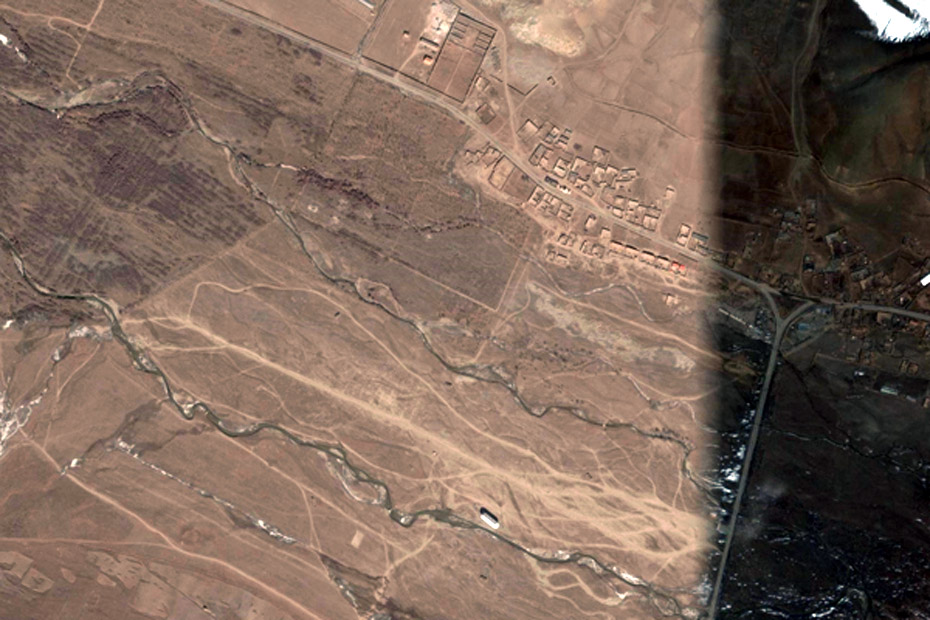 利用對(duì)地觀測(cè)中心2010年4月16日獲取的高分辨率航空遙感數(shù)據(jù),提取出玉樹州結(jié)古鎮(zhèn)城區(qū)范圍內(nèi)地震破壞最嚴(yán)重或典型地區(qū),使之與GoogleEarth中相應(yīng)位置的震前遙感衛(wèi)星數(shù)據(jù)進(jìn)行對(duì)比,直觀展現(xiàn)結(jié)古鎮(zhèn)在此次地震中的受影響程度。圖片來源:中國(guó)科學(xué)院