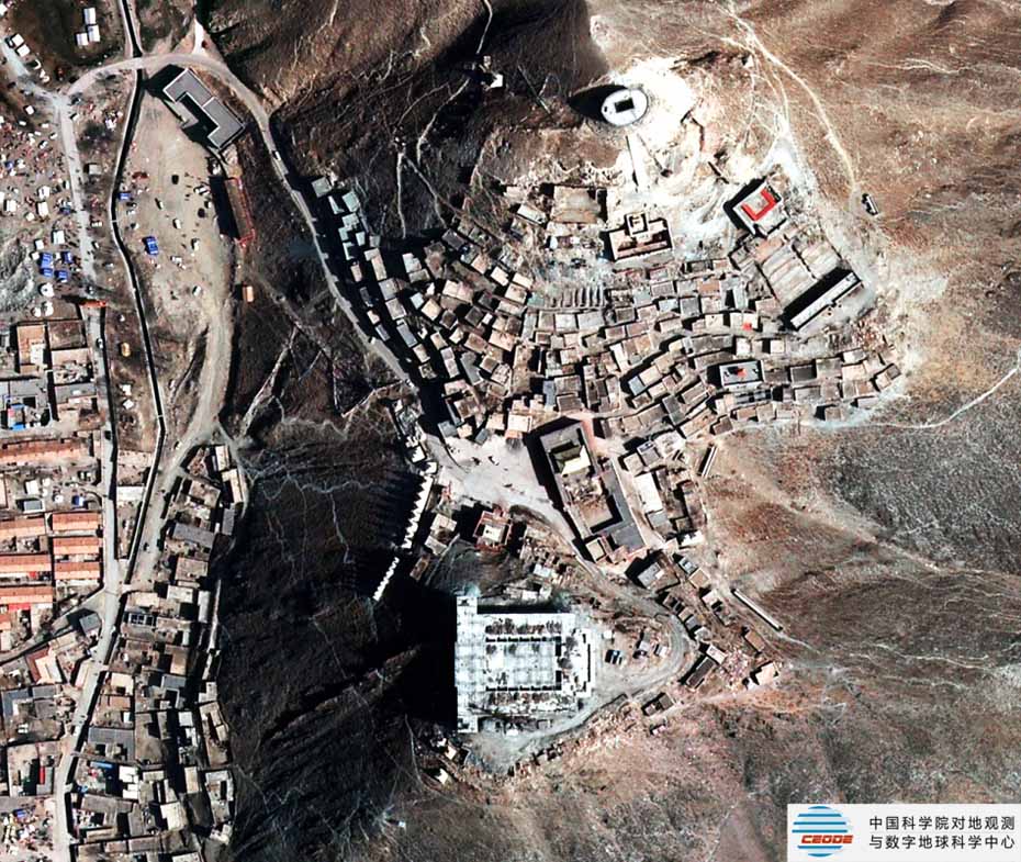災(zāi)后藏傳佛教寺廟-嘎結(jié)古寺〔由中國科學(xué)院對地觀測與數(shù)字地球科學(xué)中心拍攝〕