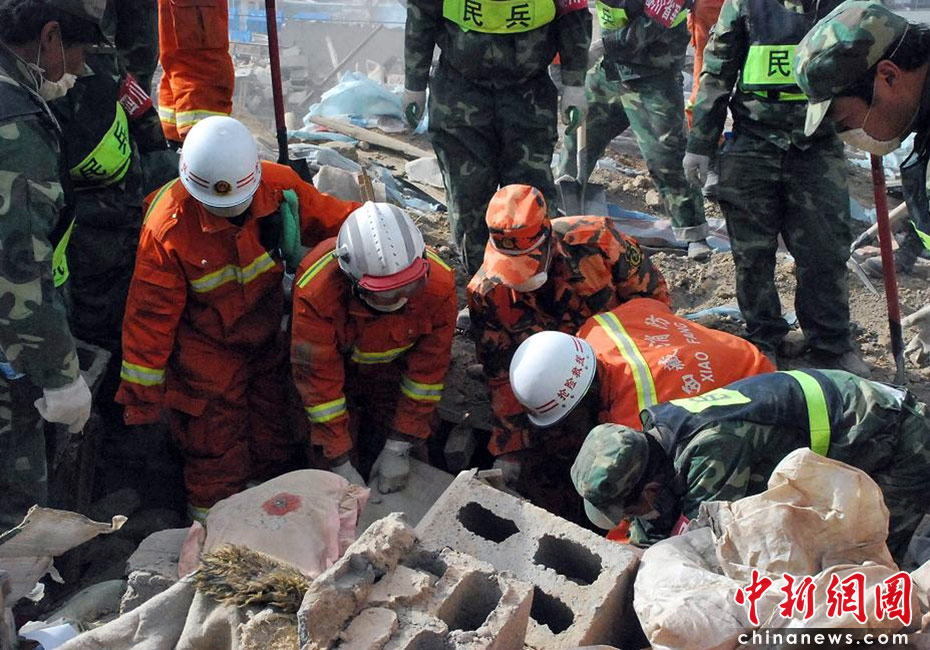 西藏公安消防部隊(duì)近日赴玉樹(shù)抗震救災(zāi)分隊(duì)103名官兵分成5個(gè)小組在不同區(qū)域展開(kāi)搜救。圖為西藏消防救援官兵與當(dāng)?shù)孛癖黄鹁仍。中新社發(fā) 劉毅 攝