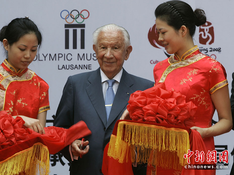 圖為2007年6月24日,薩馬蘭奇在北京為第13屆世界奧林匹克收藏博覽會開幕剪彩。