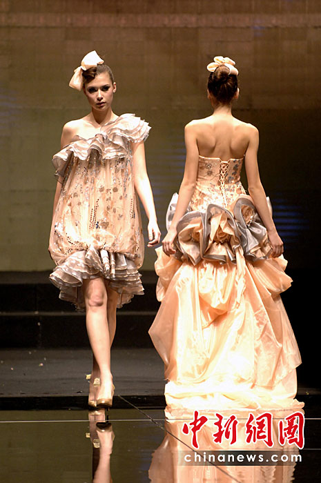 4月20日晚,臺灣著名設計師蔡美月最新婚紗秀在福建石獅上演。當日,首屆海西國際時裝周在福建石獅閉幕,本屆時裝周吸引了來自海峽兩岸的紡織服裝界企業(yè)家和知名服裝設計師。期間舉辦了12場時裝品牌和設計師作品動態(tài)發(fā)布會,品牌服裝、童裝、面料、輔料、流行色的流行趨勢專場發(fā)布會。王東明 攝