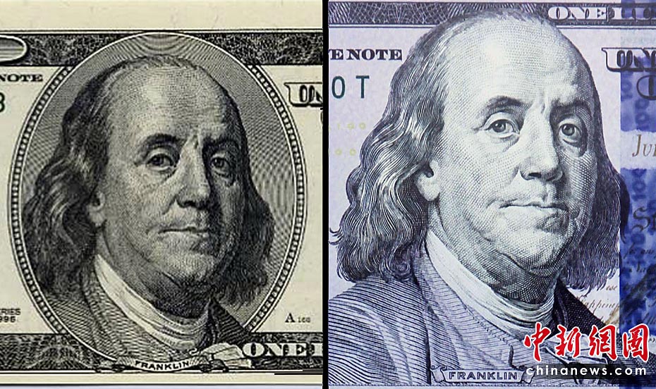 4月21日,美國財(cái)政部和美聯(lián)儲(chǔ)共同發(fā)布新版100美元面值的紙幣票樣。此次發(fā)行新版百元美鈔旨在防范假鈔,同時(shí),老版美元仍將繼續(xù)流通。圖片來源:中國新聞網(wǎng)