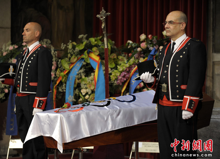 西班牙當?shù)貢r間4月22日18時,國際奧委會終身名譽主席薩馬蘭奇的葬禮在巴塞羅那舉行,包括西班牙國王夫婦、現(xiàn)任國際奧委會主席羅格、F1車手阿隆索、巴薩俱樂部主席等在內的政界和體育界4000多人出席,網球名將納達爾等負責抬靈柩,送別薩翁最后一程。