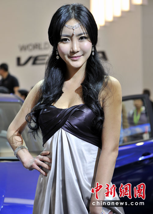 “第十一屆北京國際車展”是名車新品搶先亮相的舞臺(tái),也成了車模們爭(zhēng)奇斗艷的場(chǎng)所,參觀者在車展中可以享受兩道視覺大餐。中新網(wǎng)記者 金碩 攝