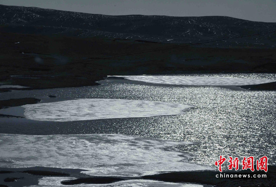 屬于長江、黃河、瀾滄江三江源地區(qū)的青海玉樹地震災(zāi)區(qū),自然保護區(qū)的18個核心區(qū)域中,有10個位于玉樹州境內(nèi),占總面積的72%。4月下旬,記者深入災(zāi)區(qū)縱深各地,災(zāi)后重建正面臨保護生態(tài)環(huán)境、為三江源建起一道生態(tài)屏障的難題;近日緊迫的防疫工作,必須使用滅菌效果好、對環(huán)境無污染的消毒劑。圖為星羅棋布的湖泊正在春風(fēng)化冰之時。中新社記者 賈國榮攝