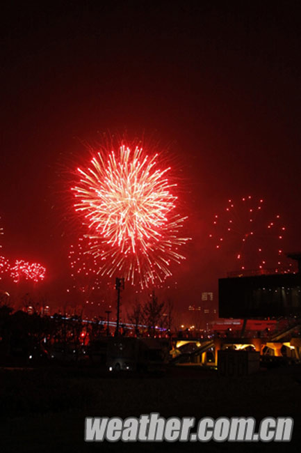 2010年4月27日,上海世博會(huì)開幕式彩排順利進(jìn)行。圖為美麗的煙花。卞赟 攝