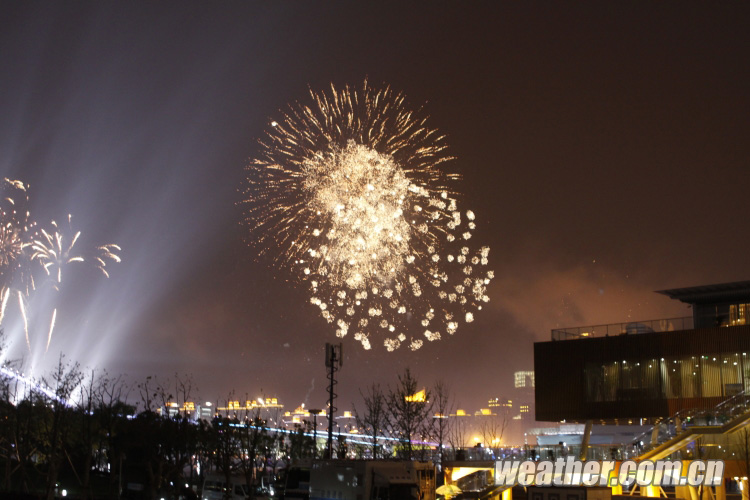 2010年4月27日,上海世博會開幕式彩排順利進(jìn)行。圖為美麗的煙花。卞赟 攝